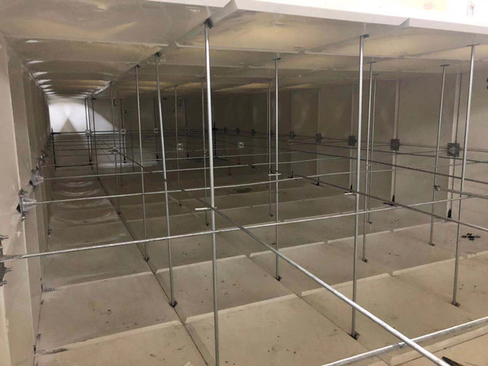 玻璃鋼水箱內(nèi)部會(huì)有一些不銹鋼橫槽在里面,這些鋼筋擺放的位置不同,有的橫放、有的斜放,有的甚至是豎立的一根根柱子。玻璃鋼水箱內(nèi)部有一根主拉筋,這種主拉筋的作用是水箱不易變形。大家知道水箱承受的重量是很大的,如果沒(méi)有其他的支撐,水箱就會(huì)變形,所以需要使用鋼筋來(lái)起到支撐的作用,大型的水箱間距會(huì)頻繁一點(diǎn)。斜筋的作用是為了分擔(dān)主拉筋的一些壓力,主柱是為了起到支撐的作用,為了頂住頂板,防止塌陷。拉筋簡(jiǎn)單來(lái)說(shuō)就是拉兩邊的水箱板的,為了固定水箱,水箱里的水灌滿了水箱不會(huì)漲破,對(duì)水箱起著重要作用。如果只用水箱板和膠條組成我們需要的水箱,雖然不滲水了,但是還不能盛水。因?yàn)槭⑺笏鋾?huì)承受一個(gè)向外的張力,要加上拉筋系統(tǒng)受力,否則玻璃鋼水箱很容易撐壞。拉筋系統(tǒng)有圓鋼,內(nèi)外拉筋板,對(duì)拉螺栓緊固。這樣玻璃鋼水箱就可以裝水了。