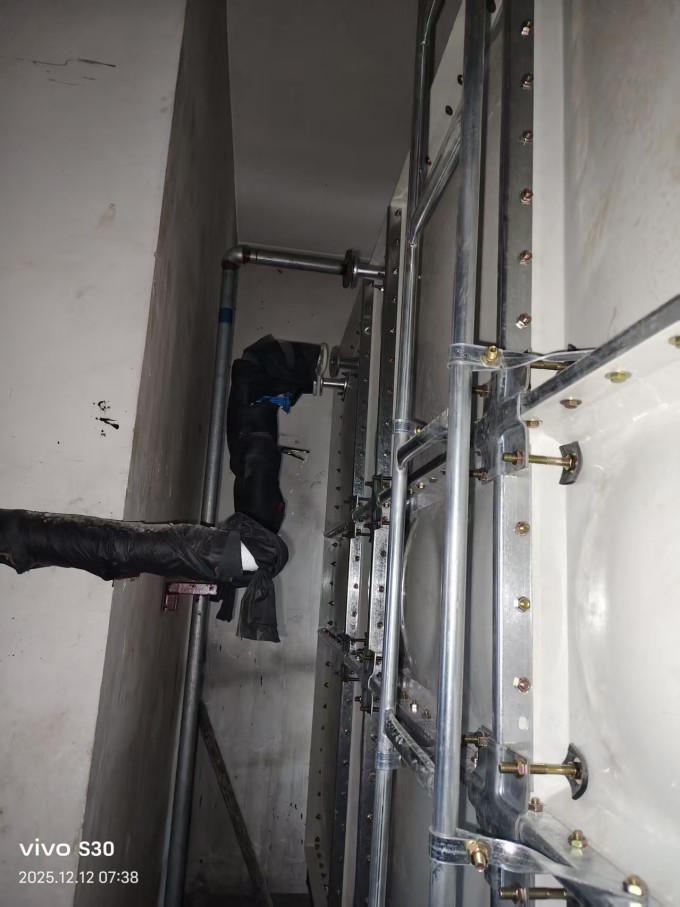 我公司承接的天津市河西區(qū)新城大廈一臺26.25立方玻璃鋼水箱已經(jīng)安裝完成。